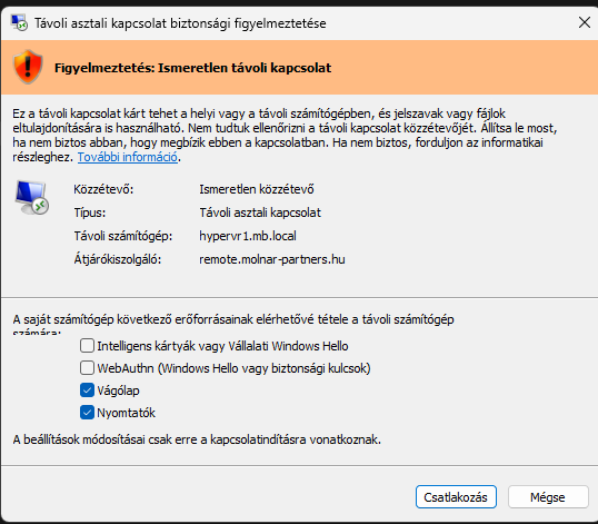A legutóbbi Windows frissítést követően megváltozott a Távoli asztal (SOLAR) csatlakozás képernyője. A kapcsolat létrehozása továbbra is változatlanul működik, azonban egy fontos beállításra kérjük, figyeljenek a csatlakozás előtt.